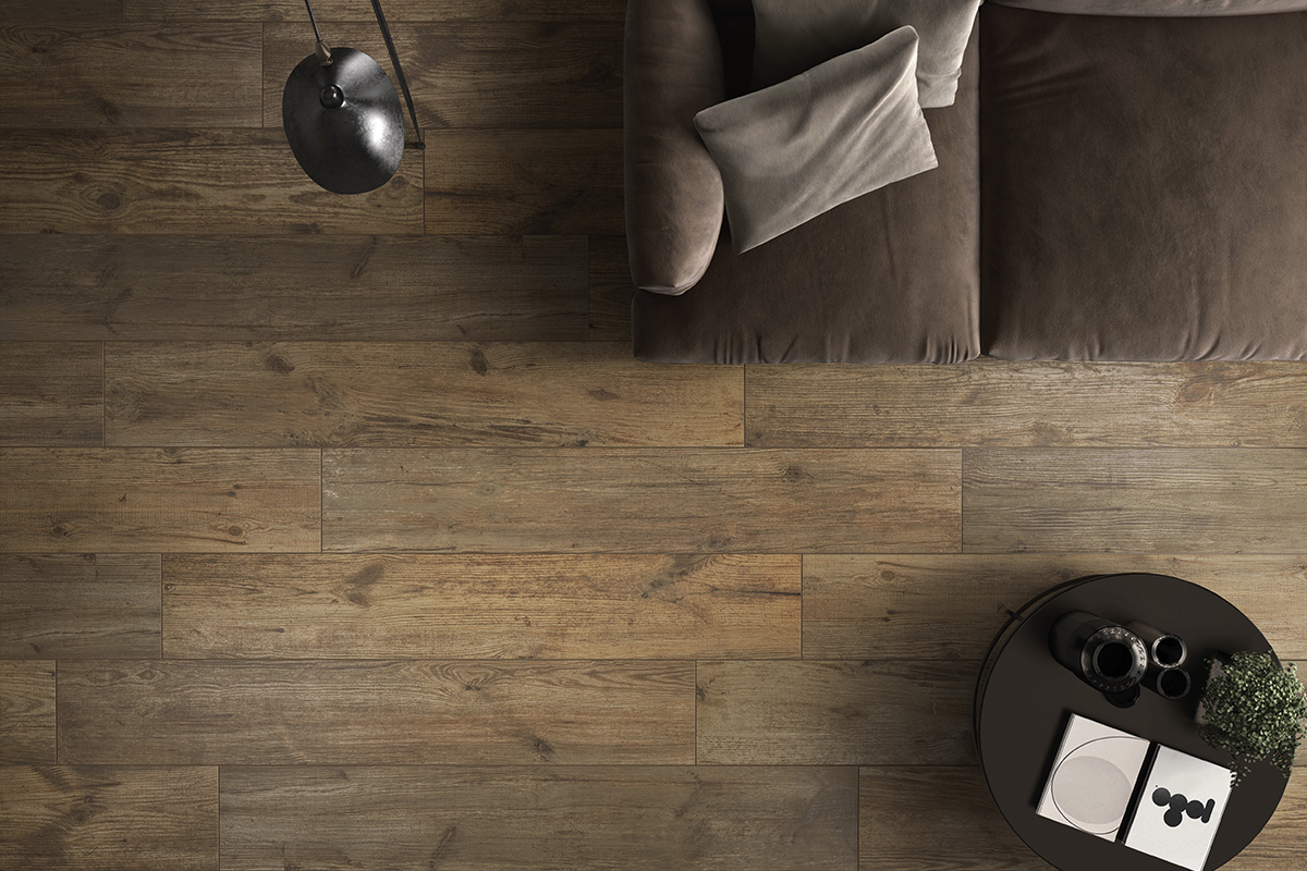 La serie Arrow si distingue per il suo effetto legno rustico anticato, caratterizzato da una notevole stonalizzazione e una vasta gamma di grafiche diverse. Questa collezione riproduce fedelmente le venature, i nodi e le imperfezioni naturali del legno, conferendo a ogni piastrella un aspetto unico e autentico.