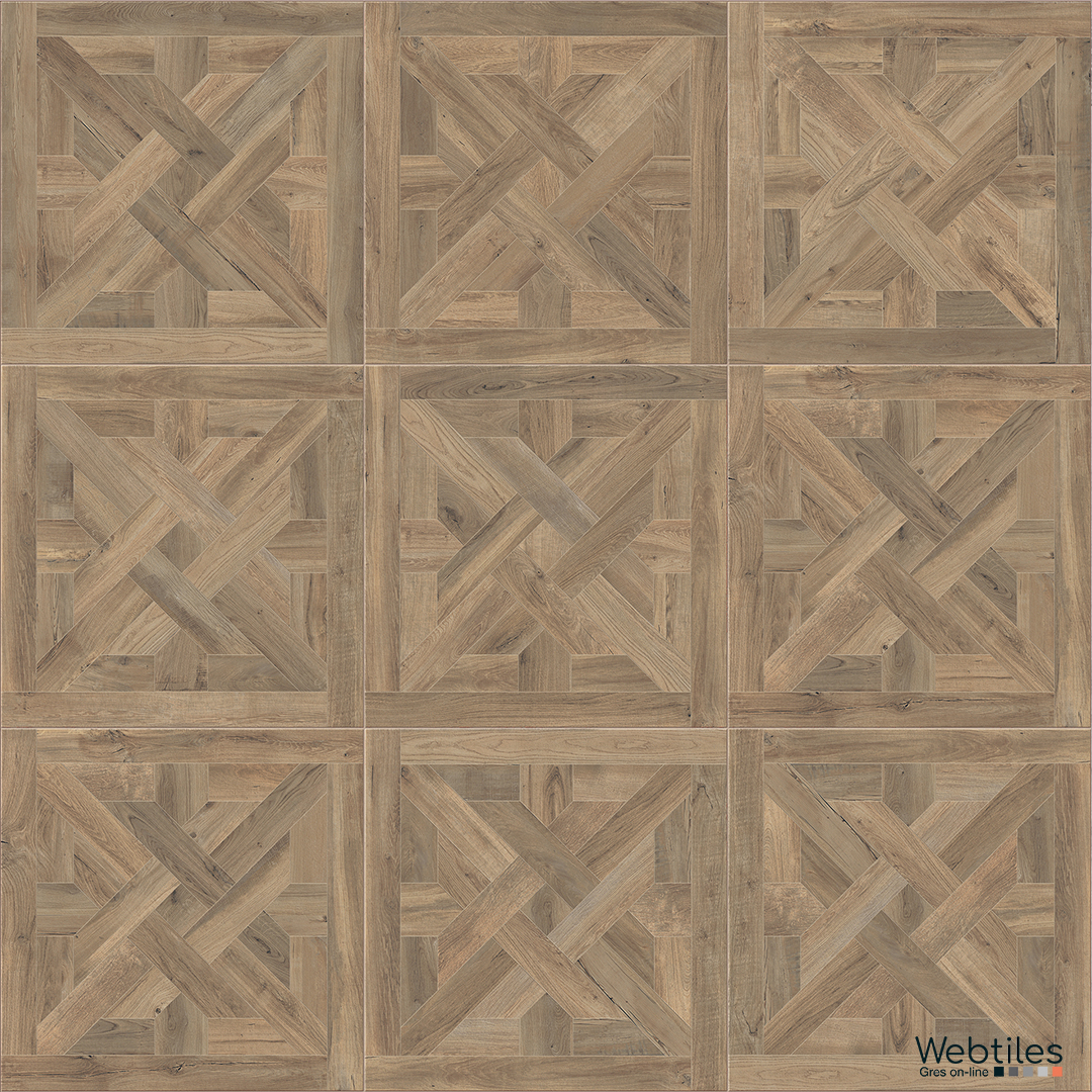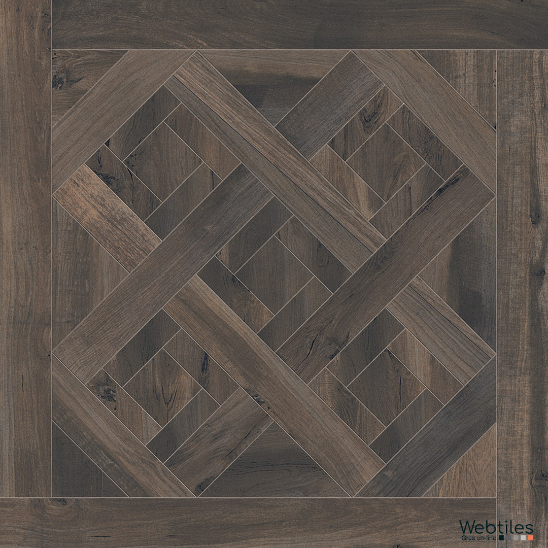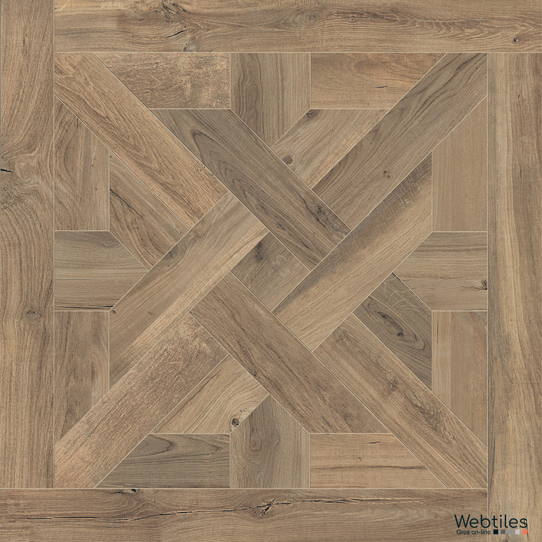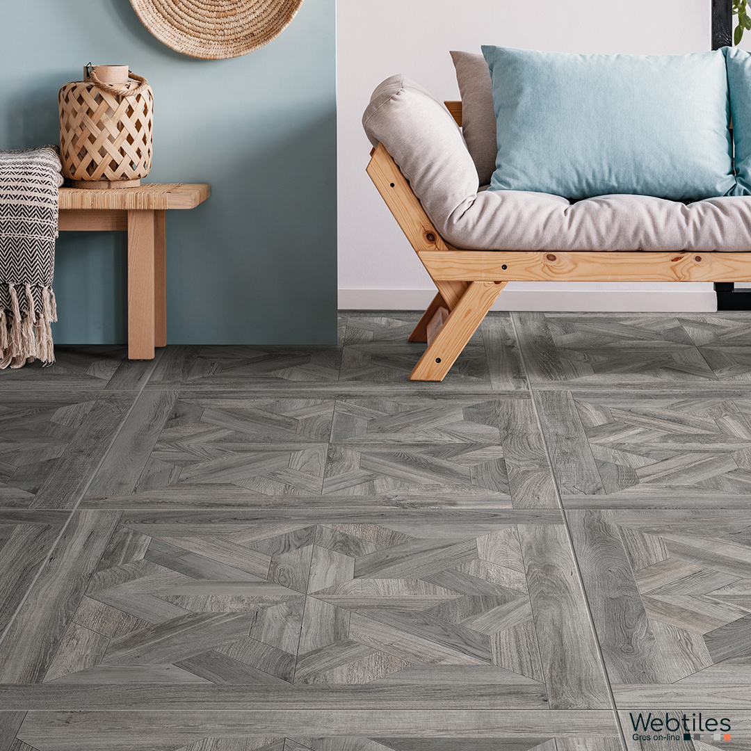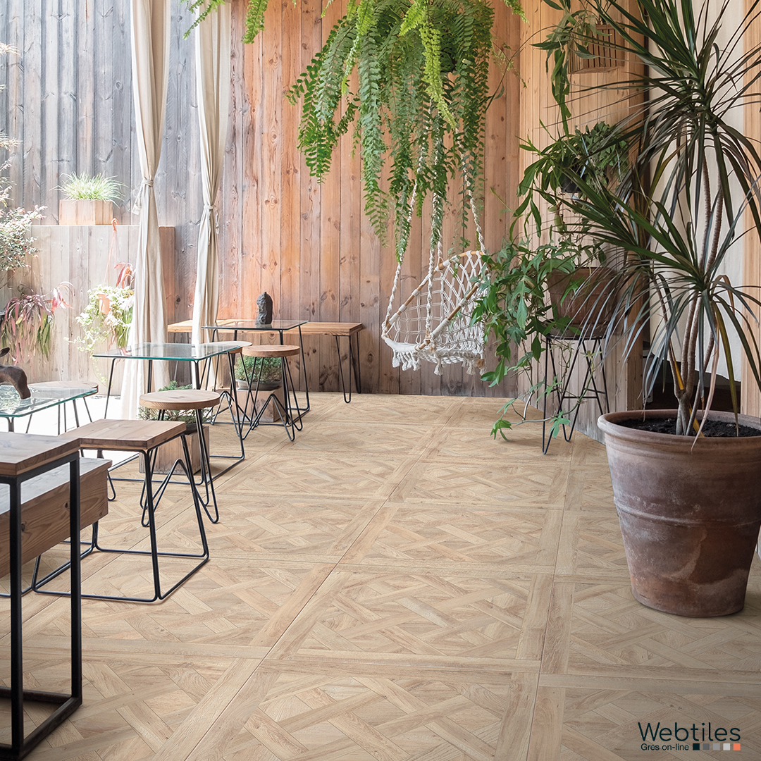 Respiro elegante e moderno per questa reinterpretazione in gres porcellanato effetto legno degli antichi e nobili pavimenti a cassettone.