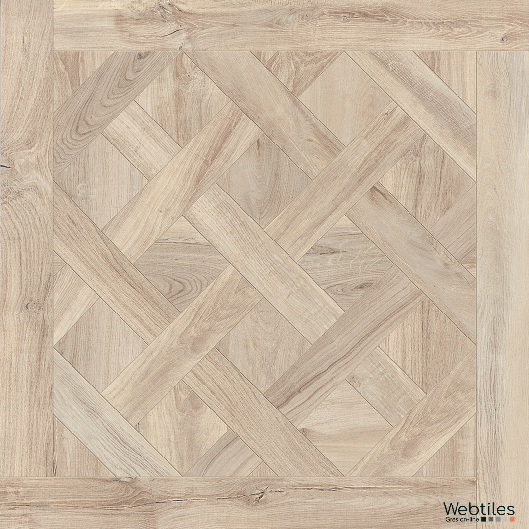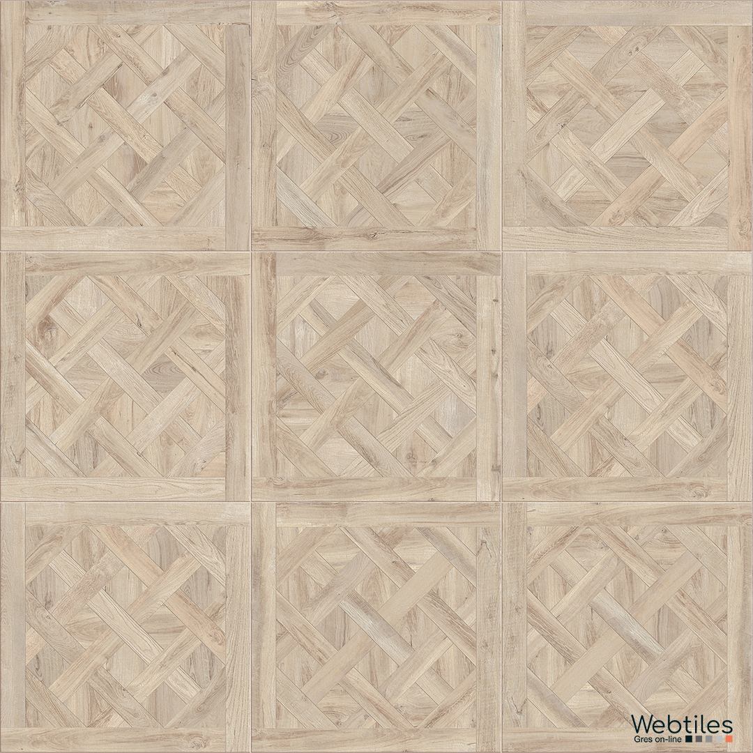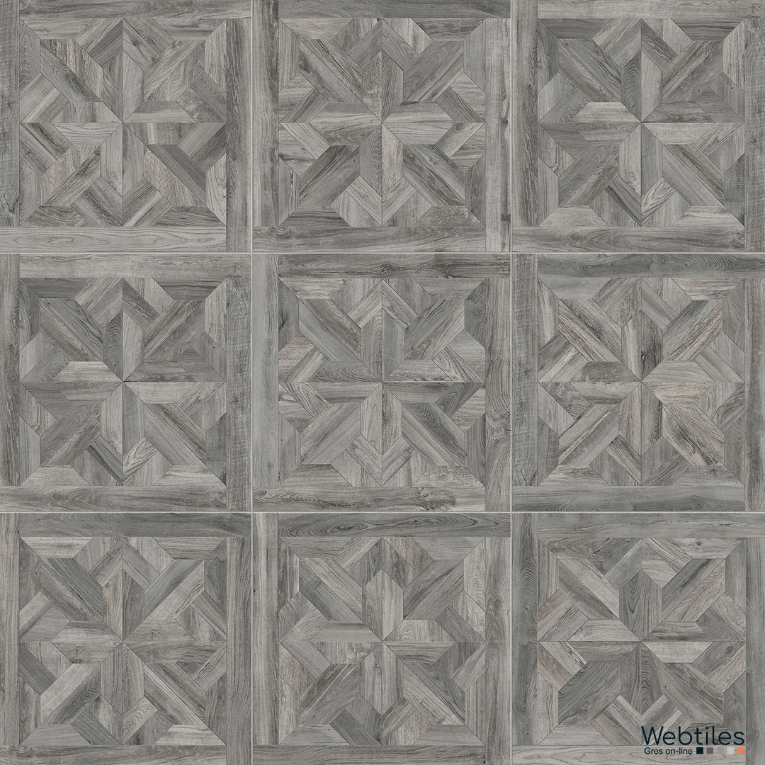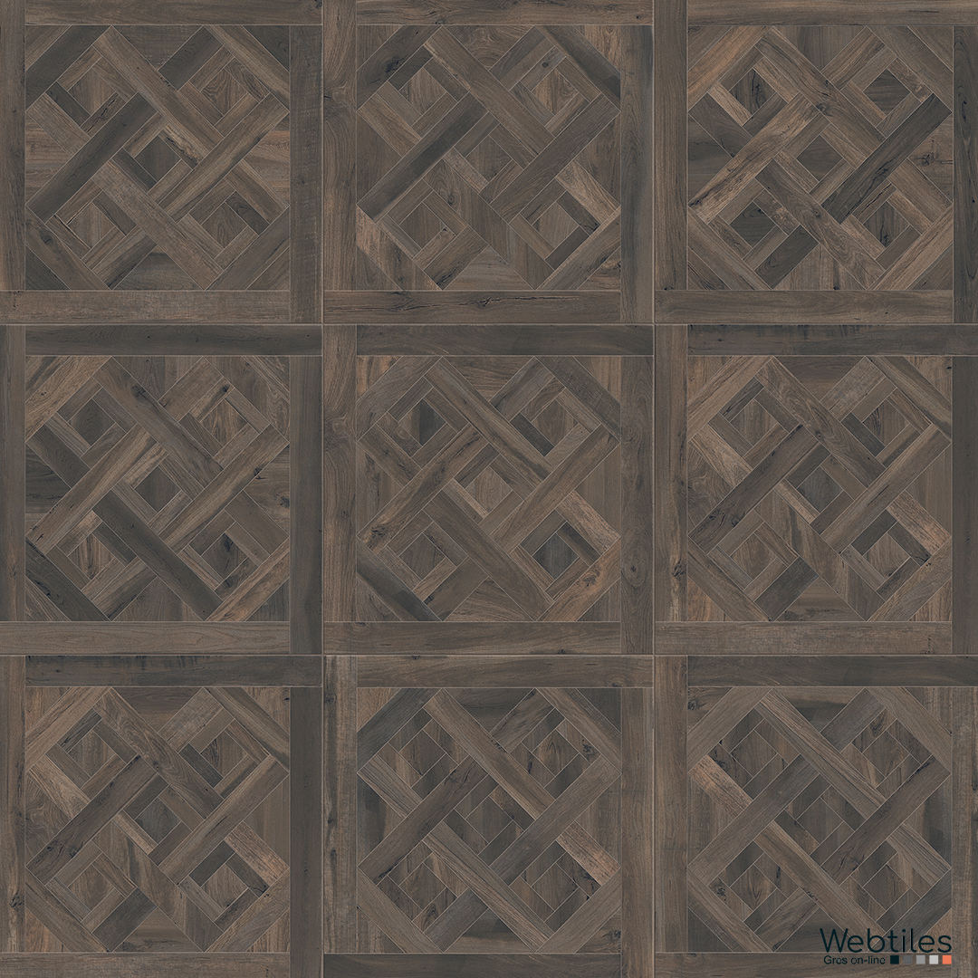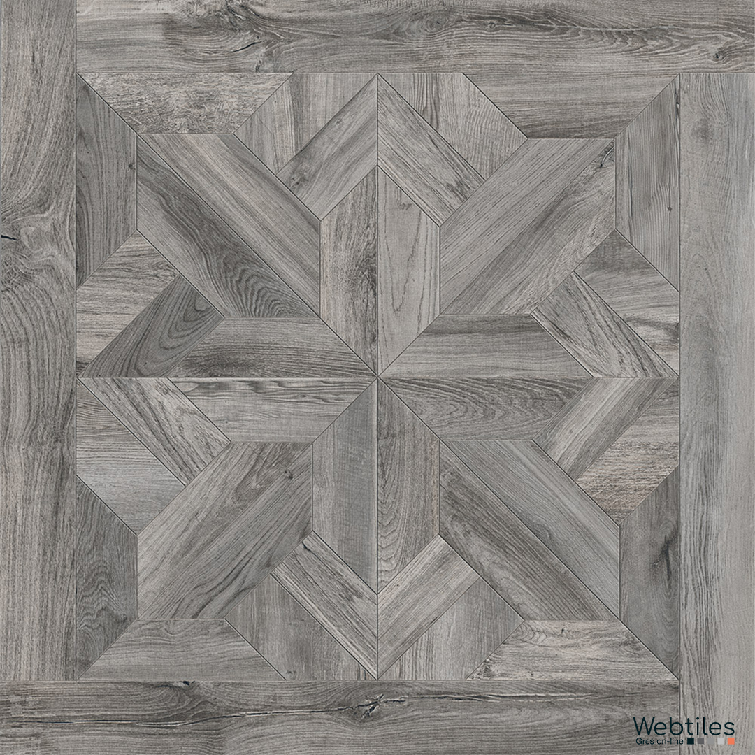 Respiro elegante e moderno per questa reinterpretazione in gres porcellanato effetto legno degli antichi e nobili pavimenti a cassettone.