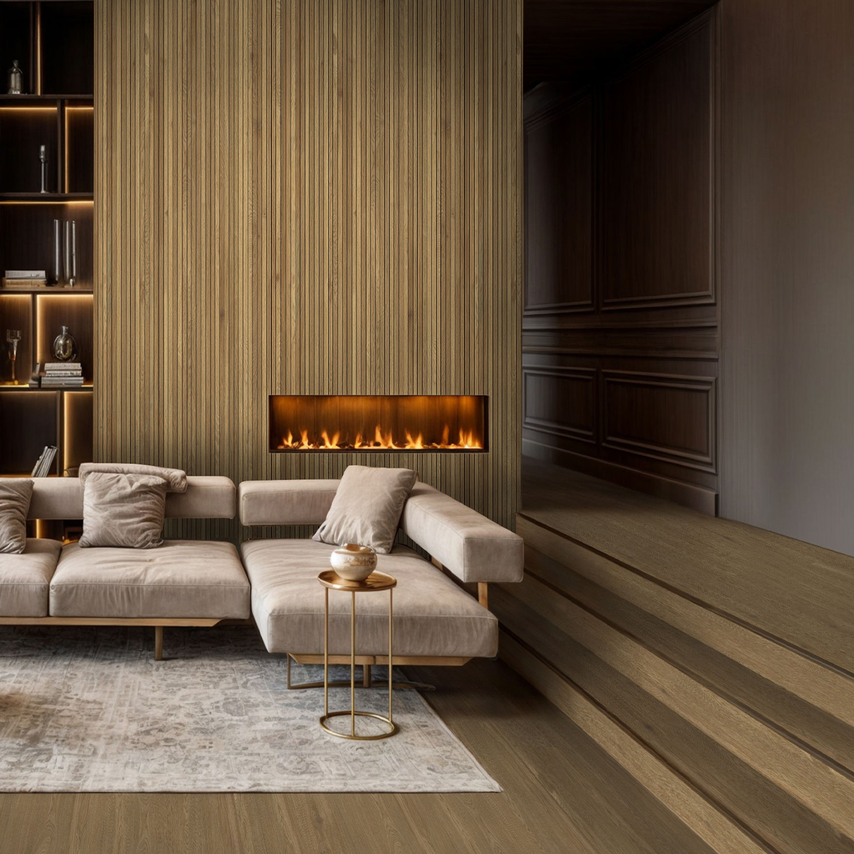 Grazie a queste dimensioni, Shade consente di creare superfici continue e armoniose, enfatizzando l’effetto legno senza interruzioni visive.